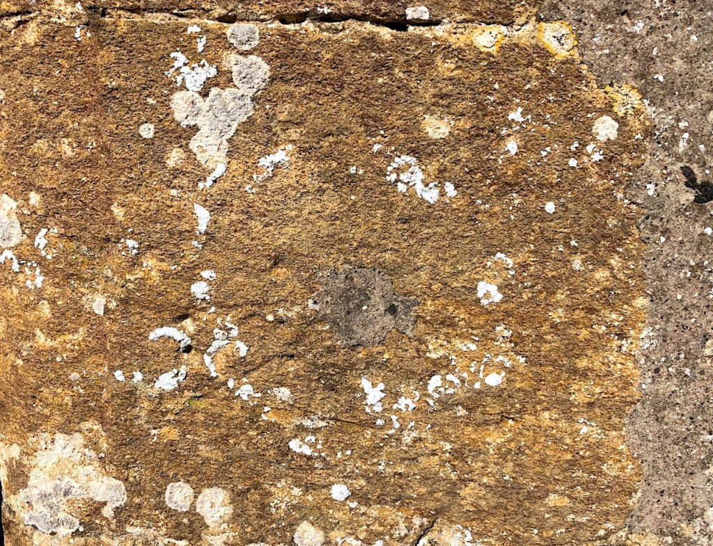 DIAL † The dial, in poor condition, is on the E. jamb of the Chancel door. Filled style hole. Faint & poorly preserved (GLP). He noted 6 lines and 7 pocks, with a cross on the mass line.