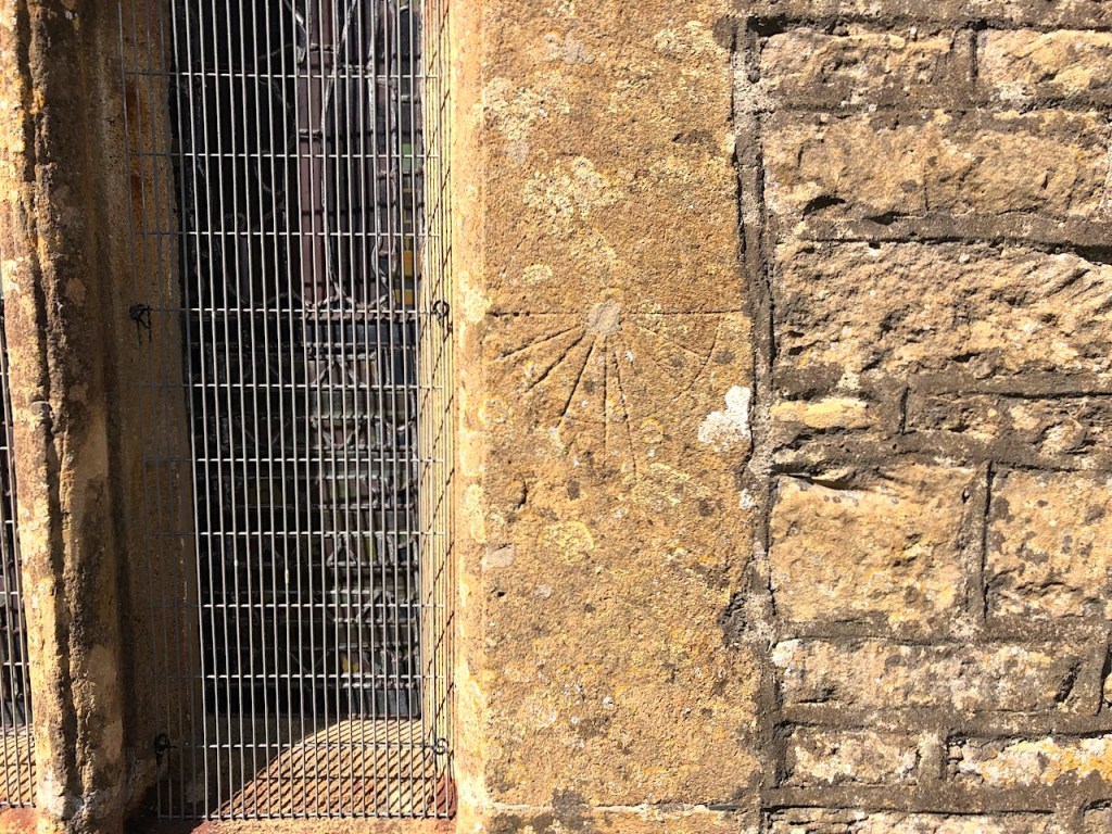 3. Above the style hole there is a roughly incised and skewed line from the top of the stone towards the side of the style hole, with (possibly) some form of emphasis at the top end. It seems unlikely to be an upper noon-line, being squint and at odds with the neatly cut lower radials. Possibly it is just a random unrelated mark, from a different century even.