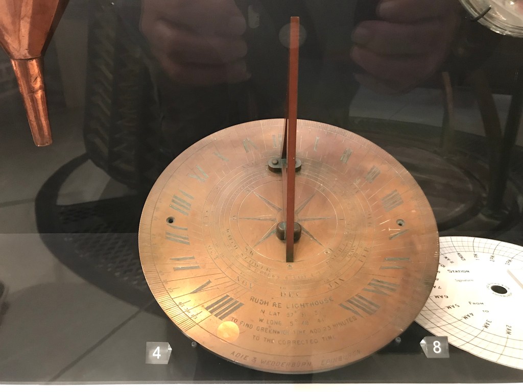 Rubh Reidh Lighthouse lantern . Gairloch Museum . Sundial in display case