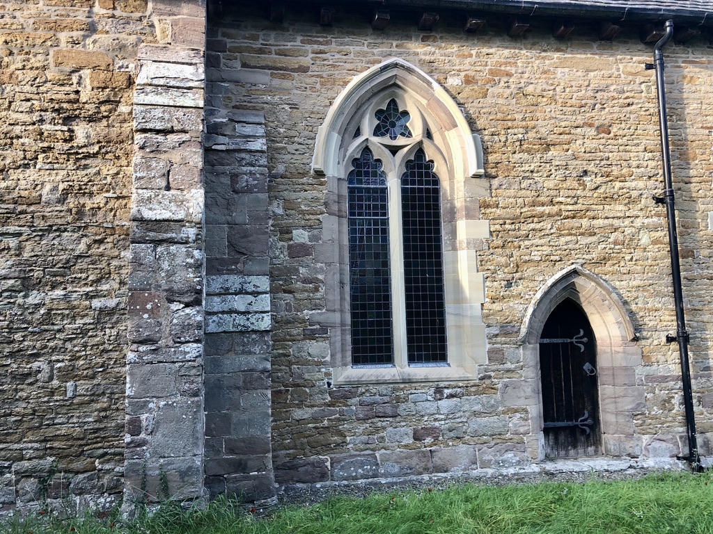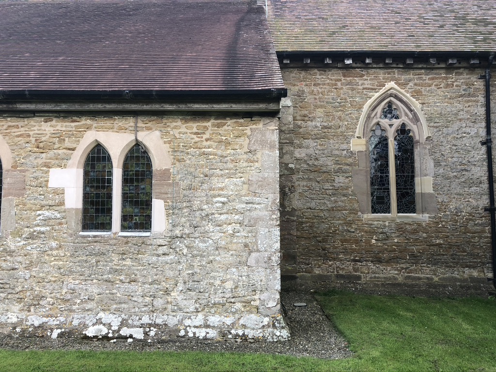 GRADE II*. C13 origins; C14 and later additions / alterations; restored late C19. There are good witch marks and other graffiti on some of the doorways. Long and low in a lovely setting between Craven Arms (N) and Leintwardine (S). 52.4033 / -2.8909 / SO394787