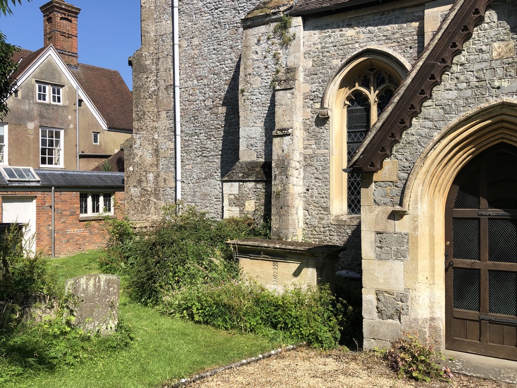 GRADE II* † Late C12, C15, 1718, 1825 and much restored after fire in 1876 by A.J. Style BLB. A fine church in a small village close to PEWSEY and the Kennet & Avon canal. There is a vertical dial (1840) with a lengthy gnomon; and graffiti including witch marks. I was pleased to see a small memorial to my best friend from school, killed on army manoeuvres by an avalanche. 51.346 / -1.8003 /  SU140607