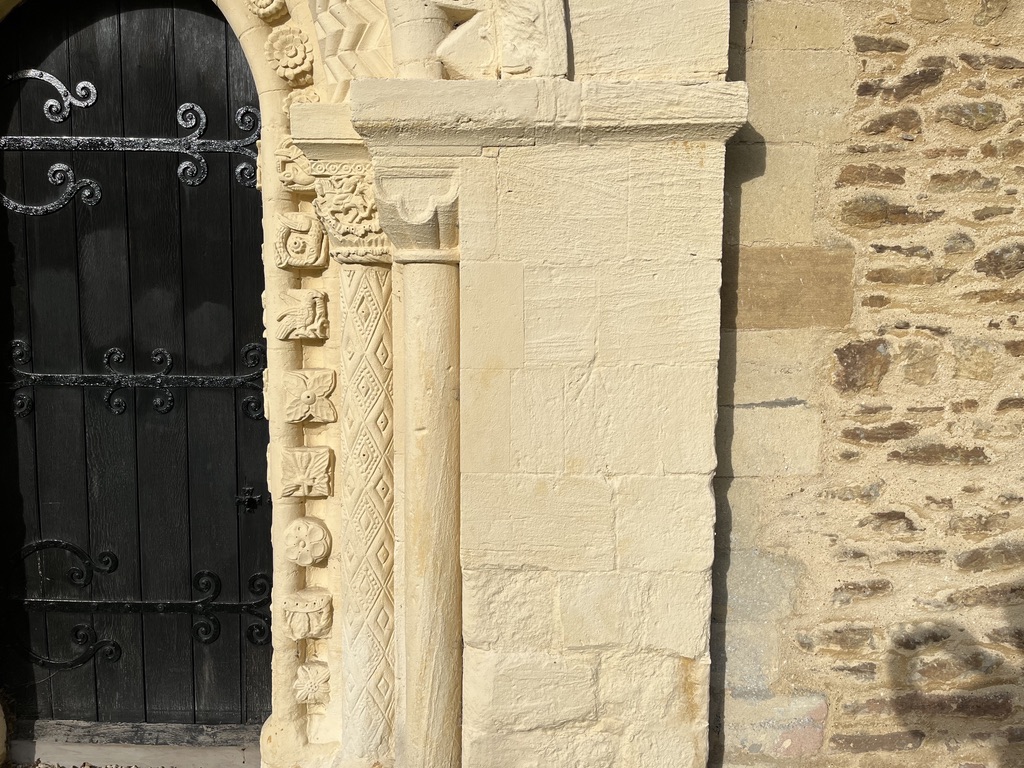 St Mary has two dials, one conventional, and one of a most unusual type that I haven’t met before. In relation to Dial 1, it’s worth mentioning that in 2017 conservation architects oversaw “a programme of conservative repair to the exuberant Romanesque masonry of the church’s west front and south door. This included the application by stone conservators of a pigmented limewash, helping to preserve the stone and improve the overall legibility of the facade”.