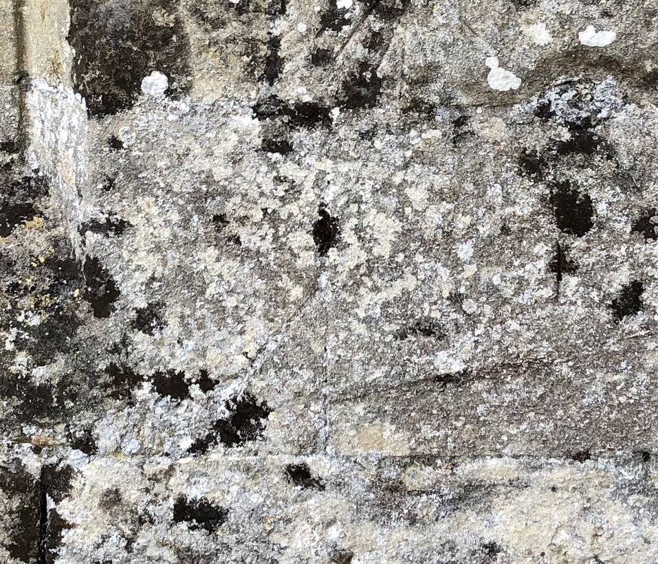 Dial 4 is smaller, with the 9 lines mainly in lower L. quadrant. Some are straight, some have slight curves. The noon line is slightly extended. The short lines LHS terminate in the mortar line and do not extend onto the adjacent stone. After some thought, I discounted the smaller hole above either as related or as a residual dial in its own right.