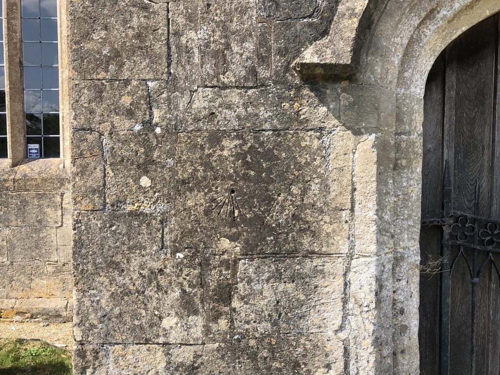 All Saints is an attractive multi-dial church. Wilts is well-served by the Council, which publishes online Wiltshire Community History. It is a valuable resource, informative and thorough while keeping entries short. It helpfully notes: there are six scratch dials on the exterior south wall, once used to determine the correct time for services. Apart from featuring in the county lists by TWC, there is little other information to be found about them. The W C link: ALL CANNINGS In fact, there are more than 6 dials.