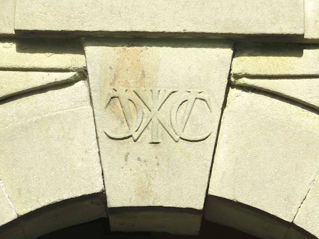 Dated inscription, and intertwined initials of Charles Cotton & Izaak Walton on the keystone