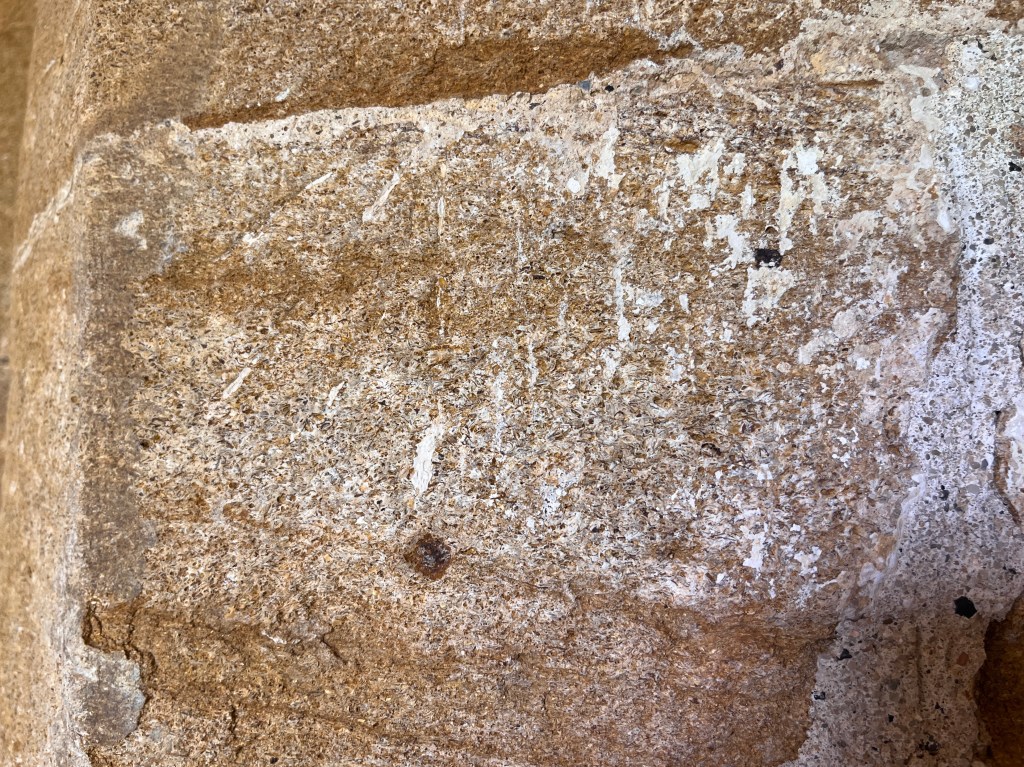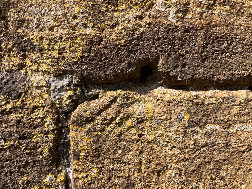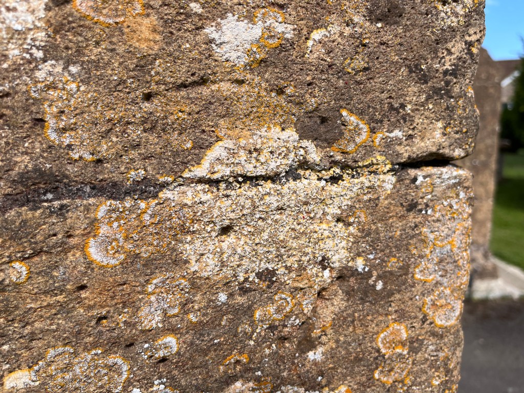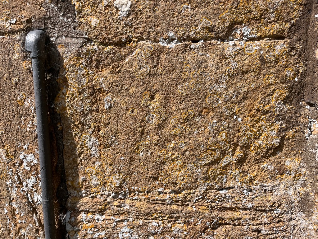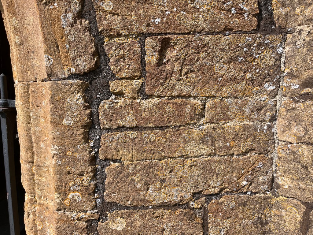 DEH visited St Mary in 1915 and recorded 4 dials (1 – 4 below). 2 of these are within the porch on the R jamb of the original doorway. There are at least 2 other certain dials and a couple of less convincing candidates