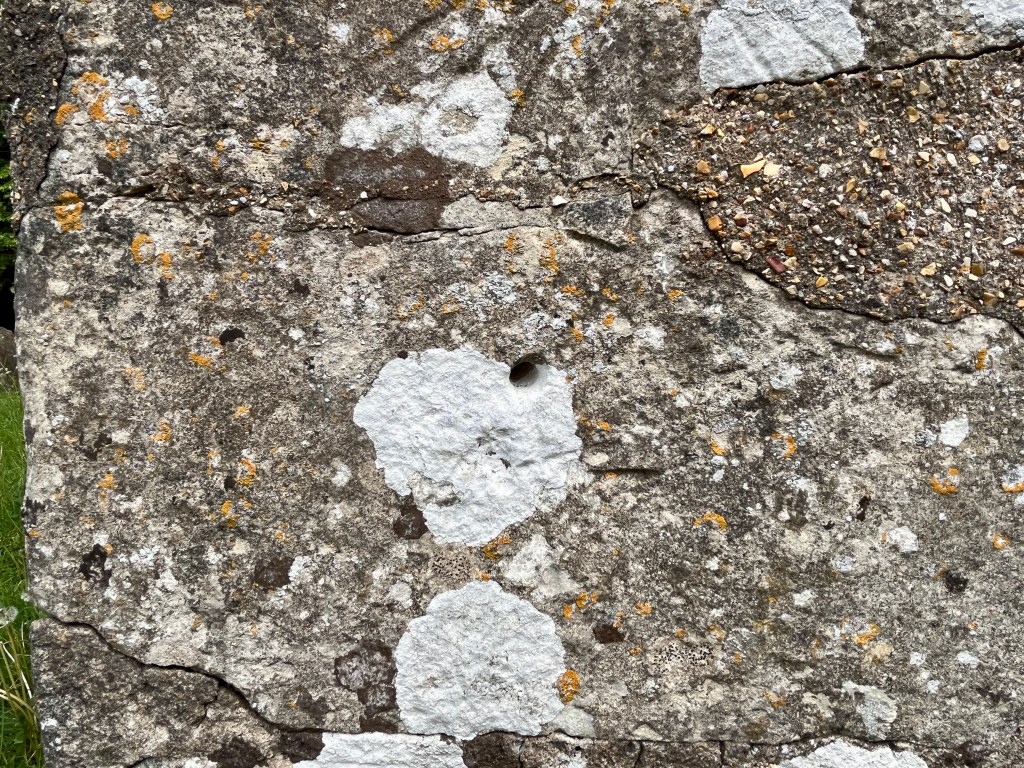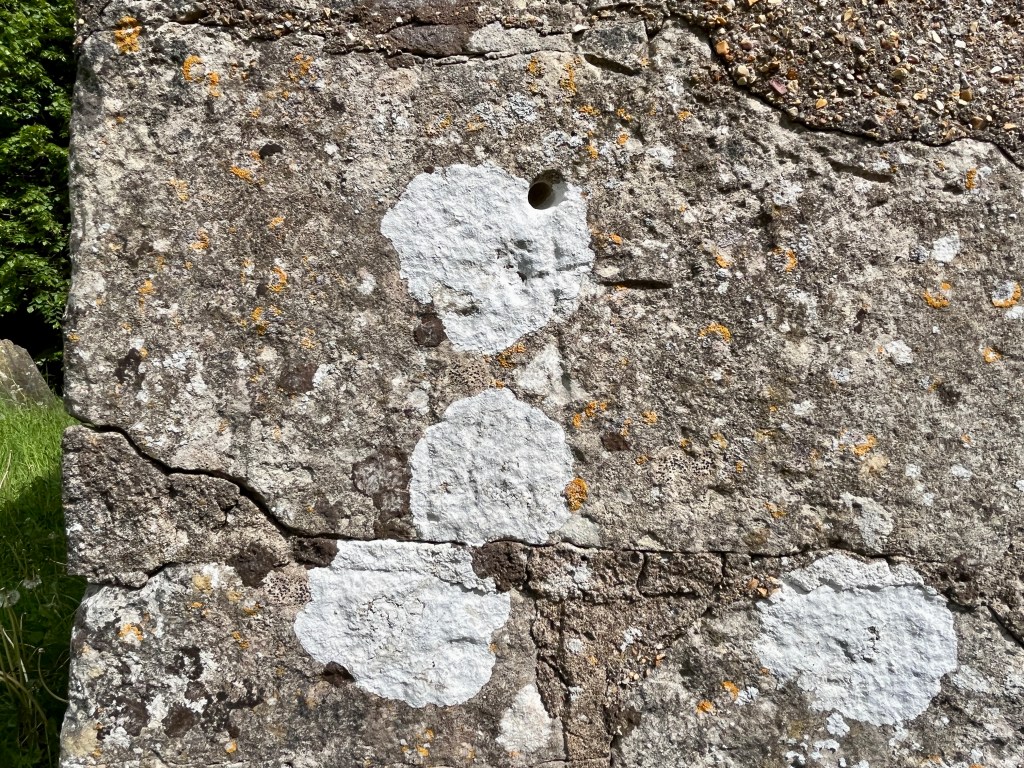 Dial 3 is immediately below dial 2 on the same buttress. It is very basic and consists simply of a slightly skewed gnomon hole, with 3 lines in the LL quadrant, partially obscured by lichen just as ARG reported 100 years ago.