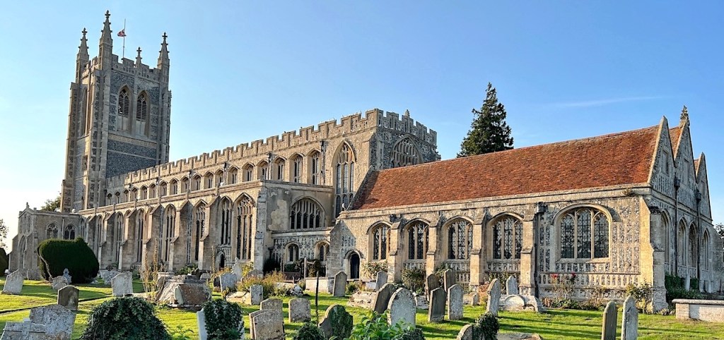 GRADE I † A magnificent church, the longest in Suffolk. Exemplar for the conversion of wool prosperity into stonework. Largely C15; W tower rebuilt 1903 (Bodley). SJ rating ***** a treasure house of English medieval art. A good overview at Great English Churches LONG MELFORD 4m N of Sudbury. 52.0878 / 0.7209 / TL865467