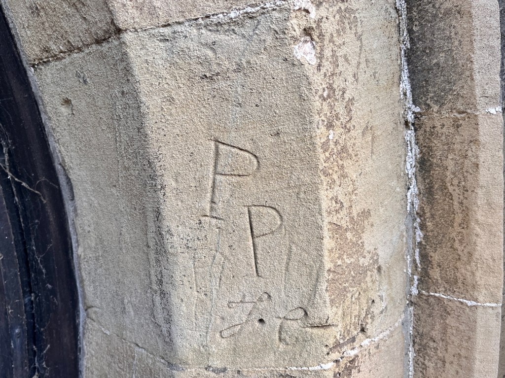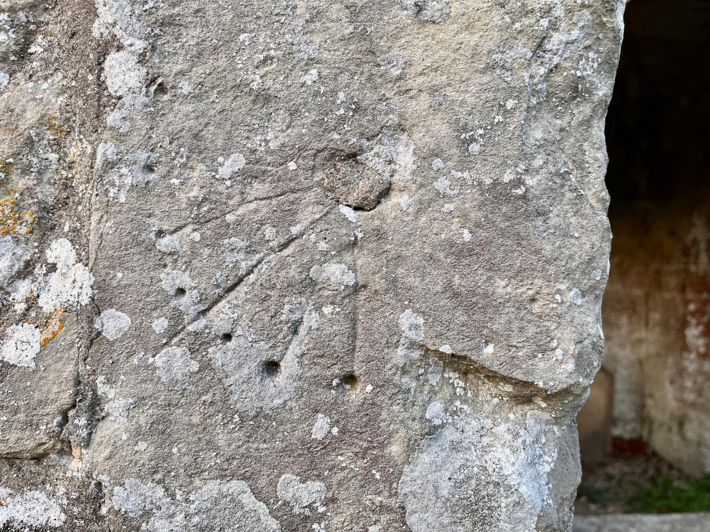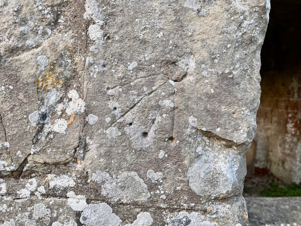All Saints has some graffiti in the porch area. Here are 2 examples – image includes ‘witch marks’