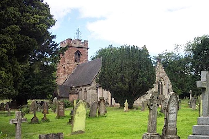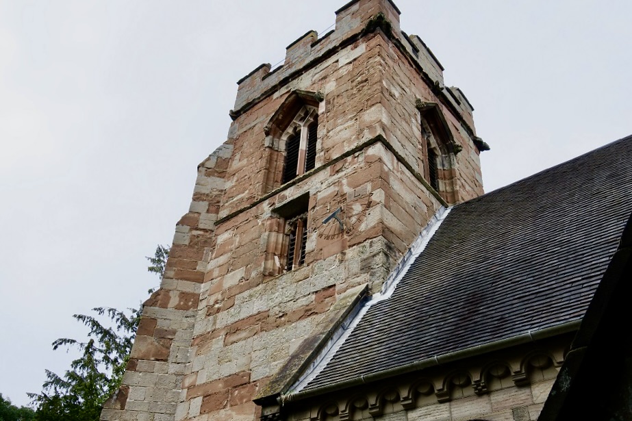GV II* † C15 tower; otherwise mainly C19. Tower has 2 diagonal buttresses, plinth, south 2-light straight-headed window with sundial to right: incised inverted semi-circle with gnomon and inscription: J 1624 L BLB . In Newport Road below the castle, not to be confused with the large ‘collegiate’ parish church, also St Mary. 52.7969 / -2.141 / SJ905221