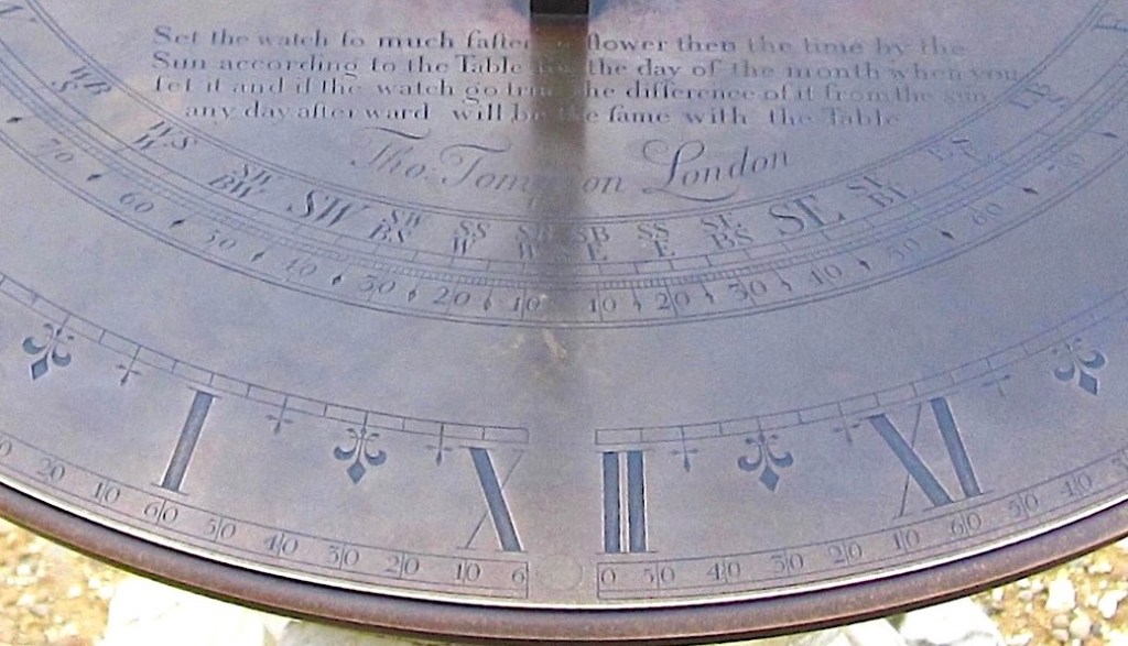 The precise date for the two dials in unclear. Tompion was baptised in 1639 and died in 1713. I have seen ‘towards the end of C17’; and the excellent Border Sundials points to evidence of installation in 1699.