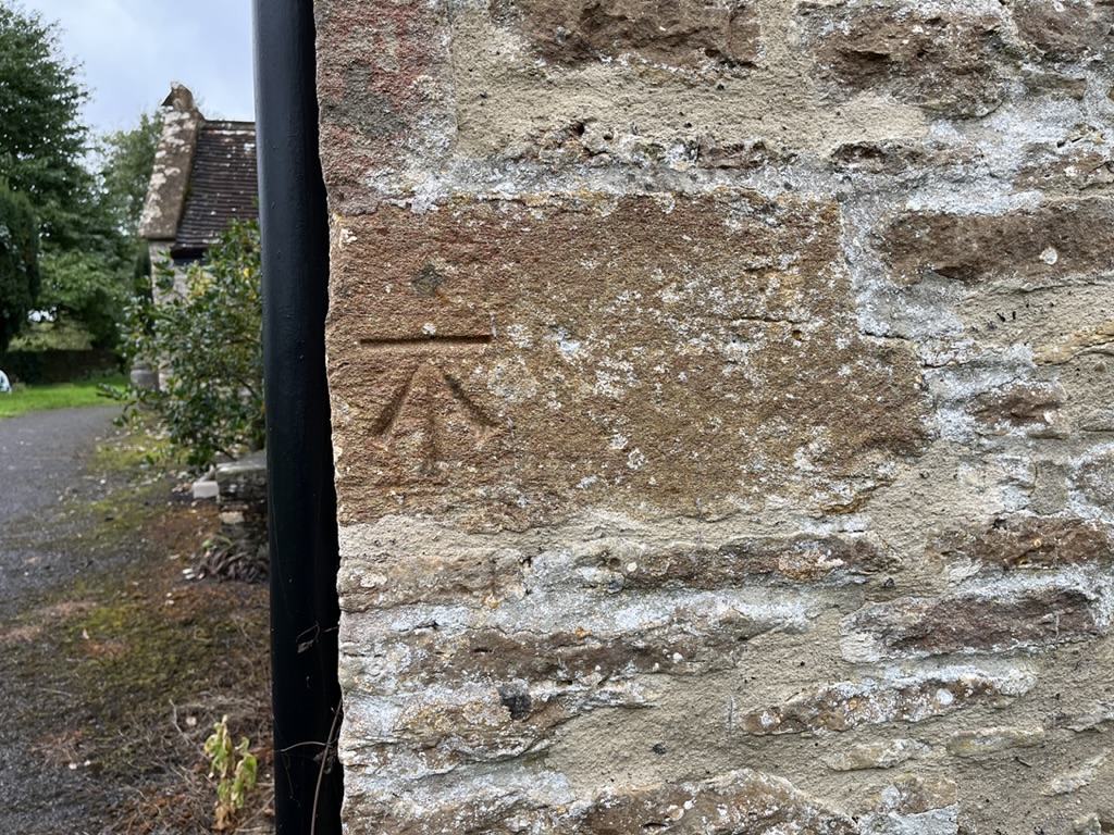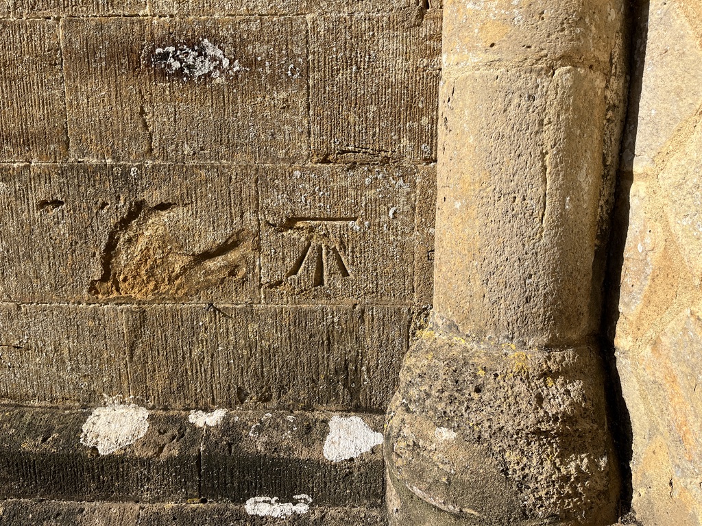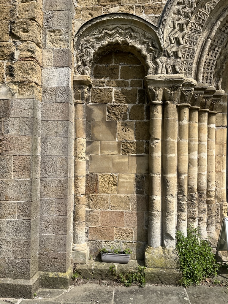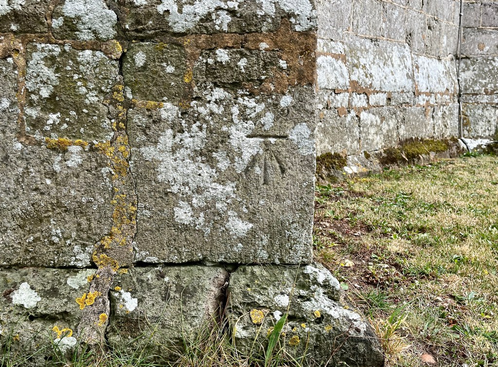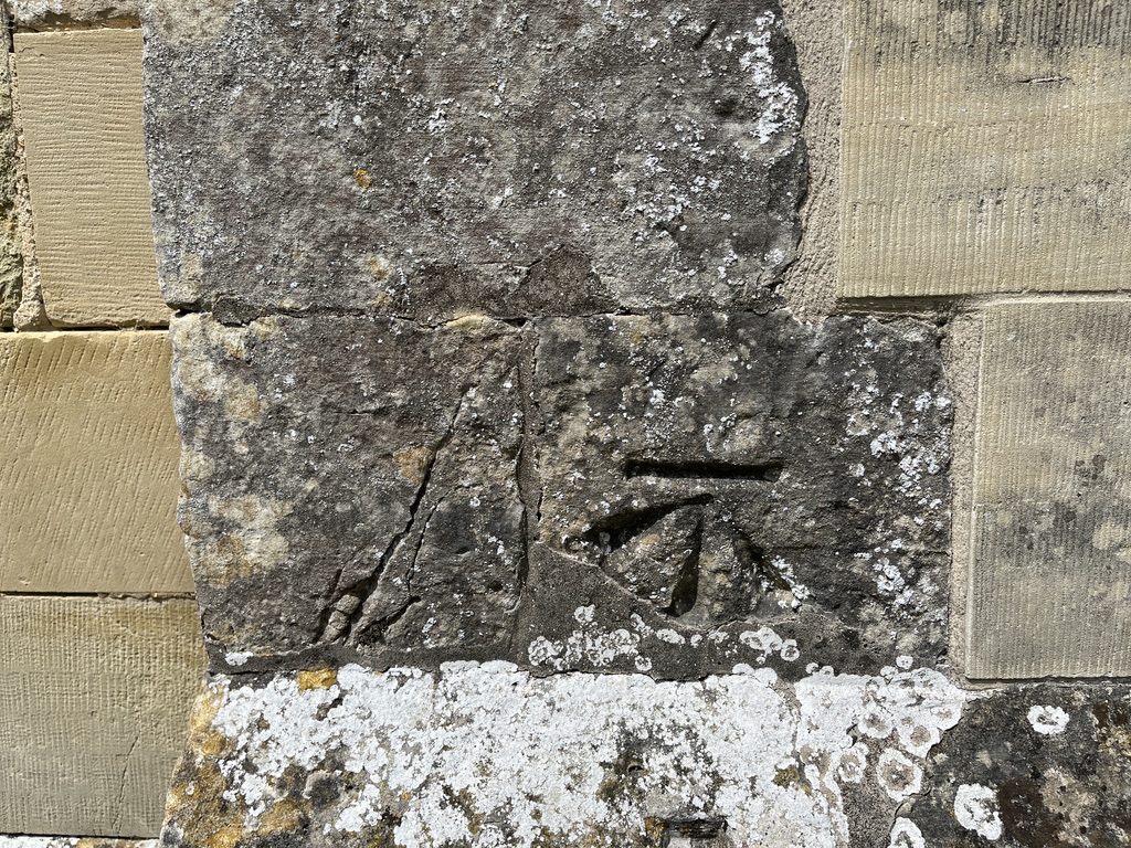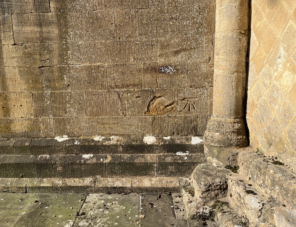 Benchmark high up to the side of the Norman doorway
