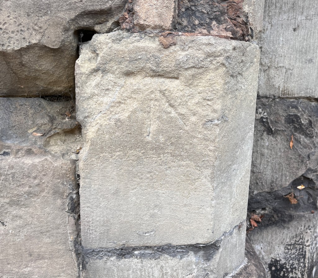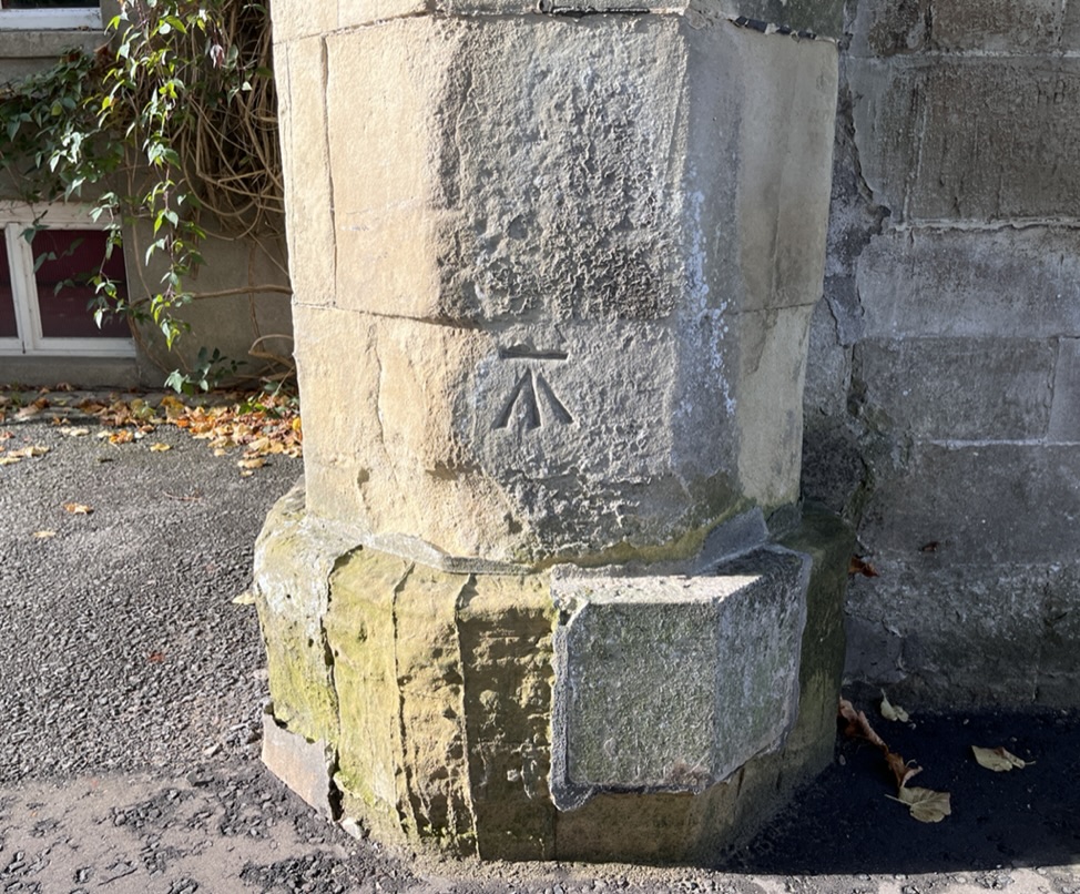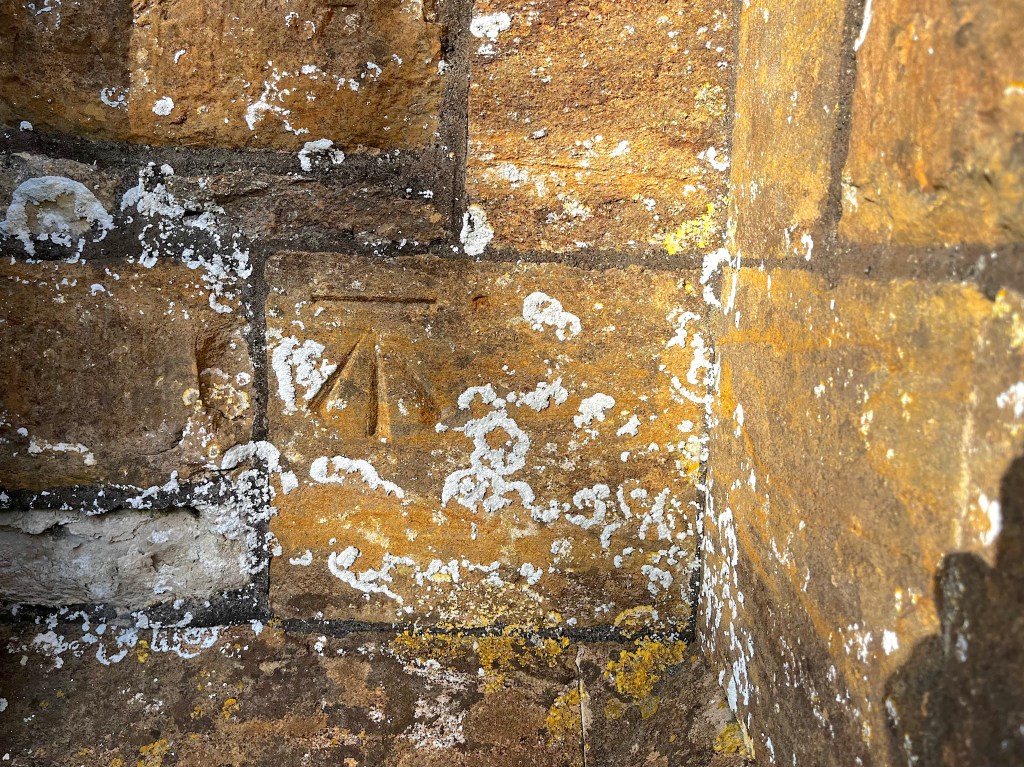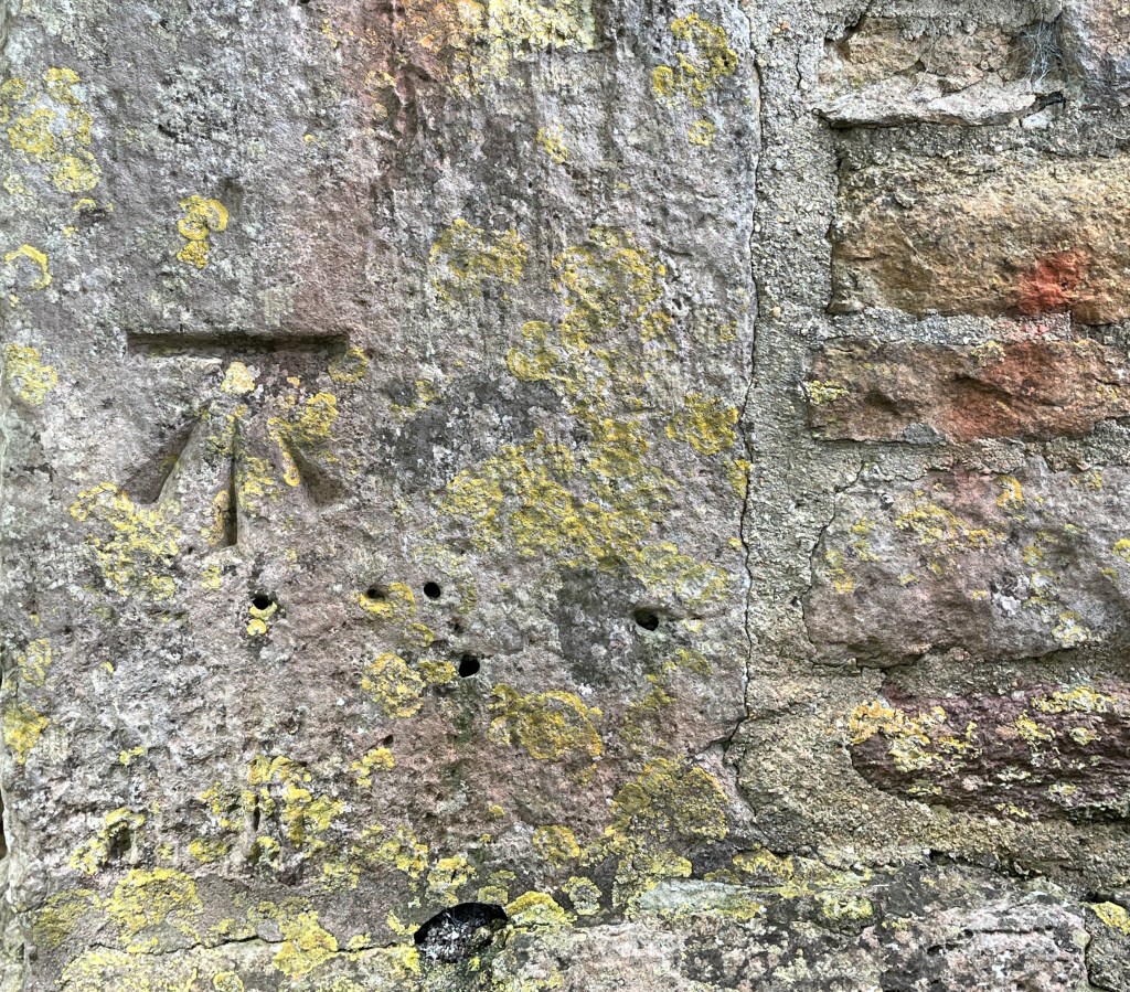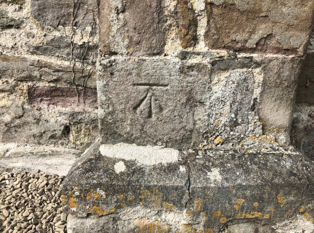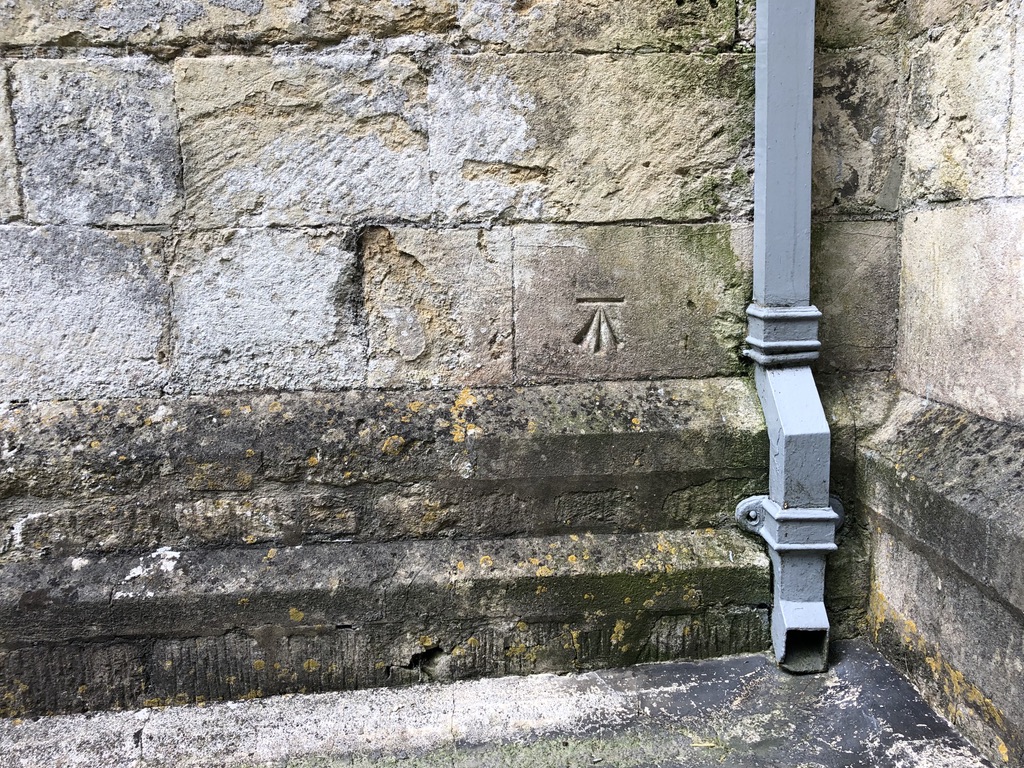 Benchmark high up to the side of the Norman doorway