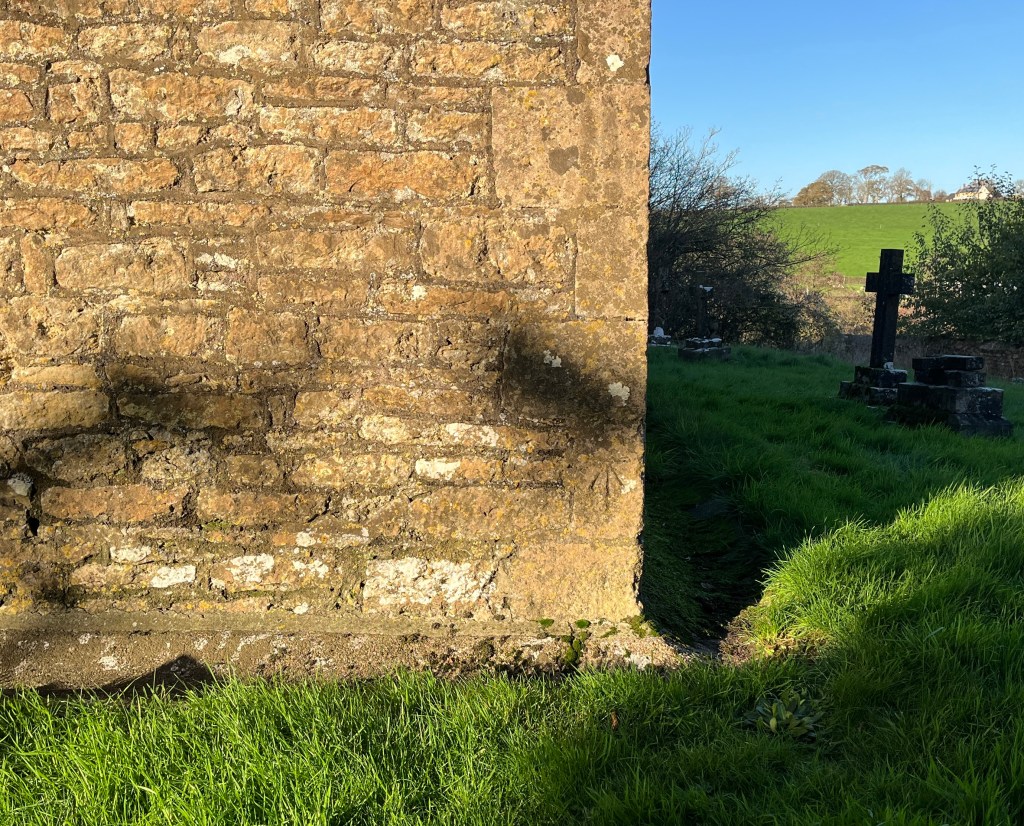 Modern marks on an ancient Surrey church that has at least 9 scratch dials