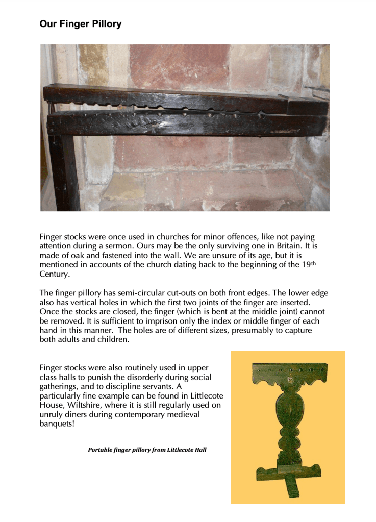 Finger ‘stocks’ were used in churches for minor offences like not paying attention during a sermon.