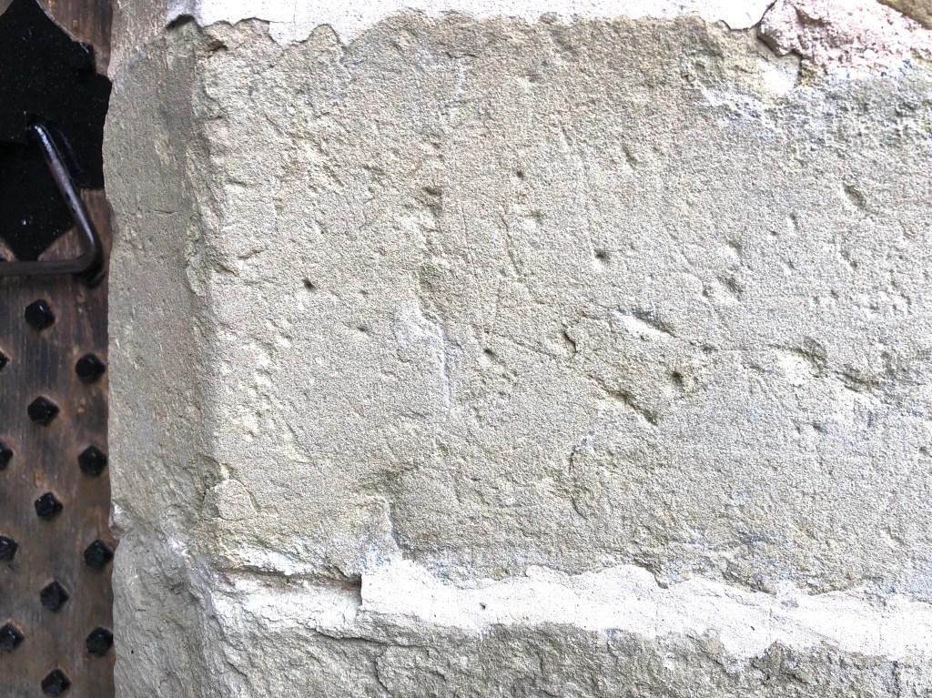 The dial, a large circle, is on a short buttress under the E. window. There are few detectable marks, not least because of the lichen that covers most of it. The presumed style hole is basically a dimple in the centre. The present position – and indeed the history of the building – indicates relocation. It’s hard to say how useful it might originally have been, but it adds to the remnants of the church’s medieval past.