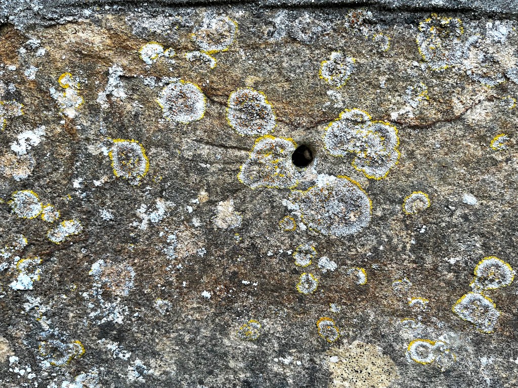 On the quoin stone next to Dial 7, another similar hole without noticeable markings. In close-up it’s hard to make much of it – faint evidence of a circle, perhaps? – except that it fits the overall picture of a line of small encircled dials.