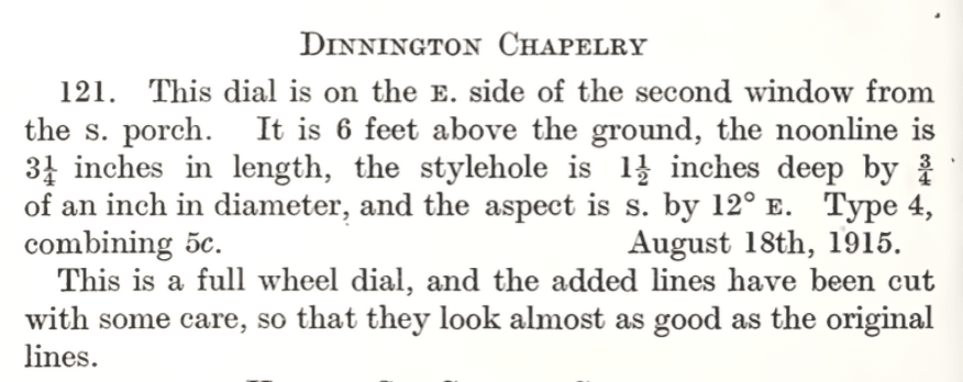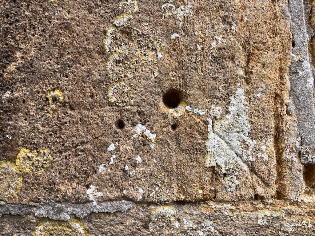 Two scratch dials are recorded with descriptions, with a third mentioned in tentative terms (BSS). When I visited, the only dial I found didn’t match the descriptions nor was it in any location mentioned. There were a few quite plausible gnomon holes but none had any additional dial-ish features, not even eroded traces. Clearly I need to return and try harder next time I’m in the area.