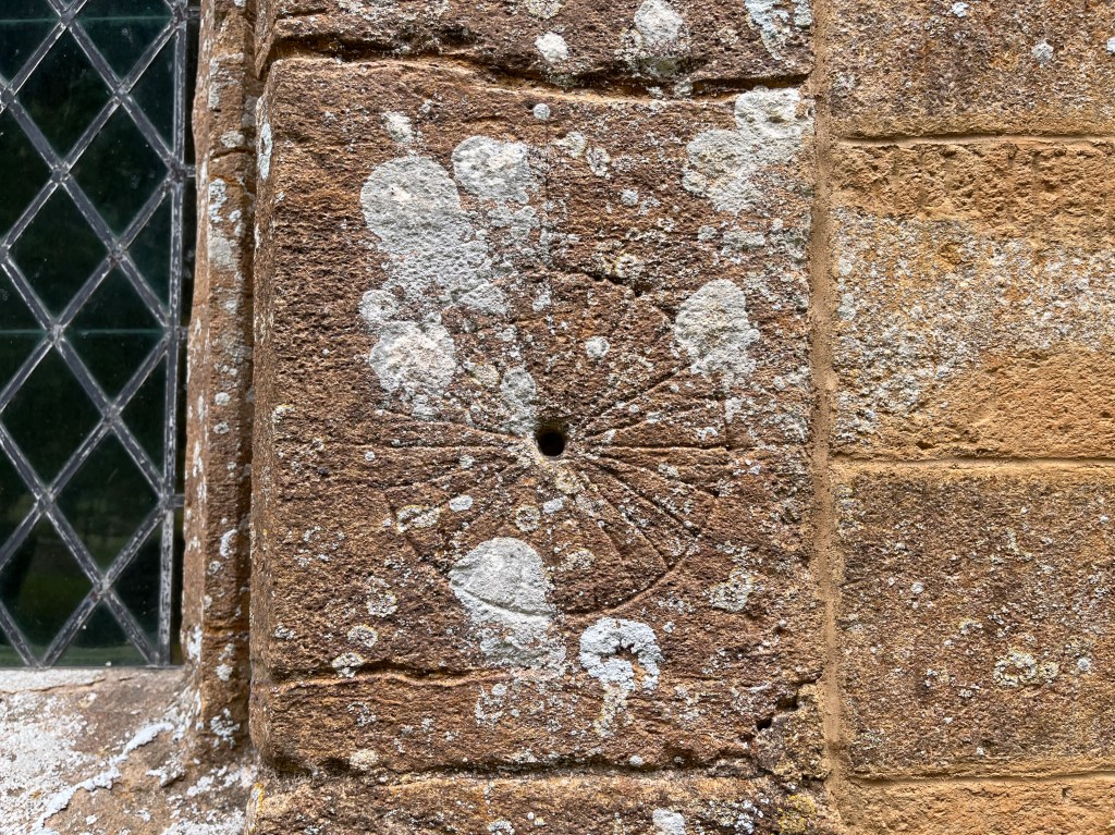St Mary was one of the earliest churches to be covered in this project, probably because it is only 2 villages away from ours. I featured the 2 the two very rare ‘sill’ scratch dials, both on the quoins of the E. corner of the window sills either side of the blocked chancel doorway, with the window jambs acting as gnomon. These are not unique, but I believe there are fewer than 5 other examples. The link to that article is HERE.