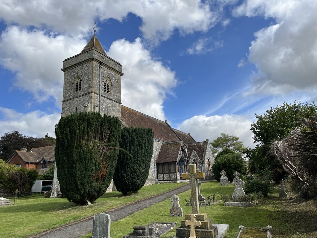 GRADE II* ❖ C12; chancel, porch late C13; enlargements; late C19 / early C20 restorations. Excellent late Norman south door. C12 font. The oldest church in the New Forest. The village and church have great military significance. WW1: a Military Hospital for severe casualties of non-British soldiers. WW2: Divisional HQ for planning D-Day. Large churchyard, commemorative graves, and a fine memorial. The church contains a moving exhibition of the wartime history. Queen Mary visited and seeing that Sikhs were lacking turbans, supplied them; and seeing broom handles being used as crutches, supplied walking sticks. 50.8146 / -1.5681 / SU305017
