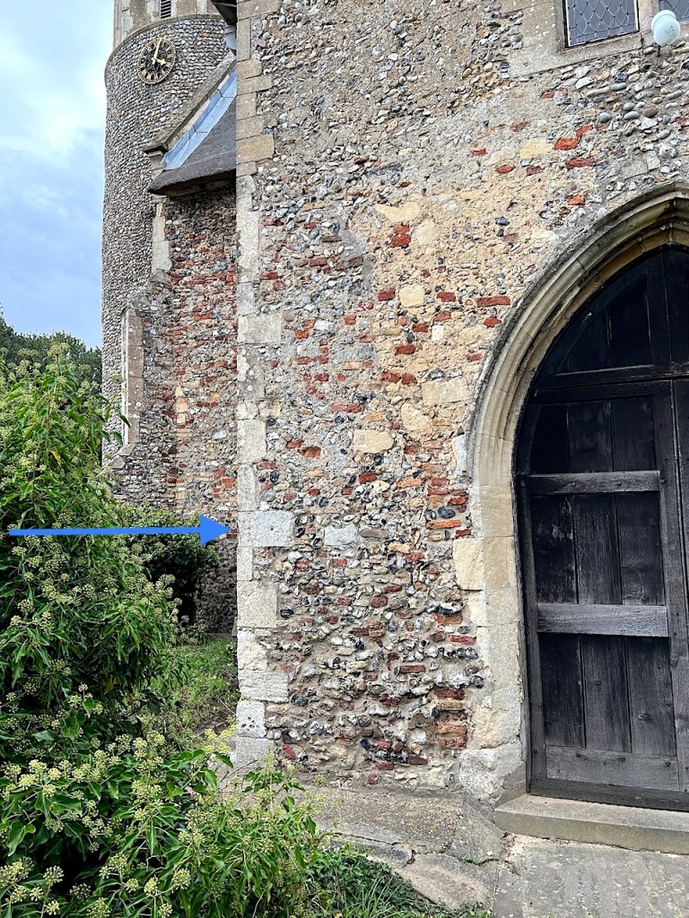 All Saints has 2 large clear dials on the same buttress. Contributor Erica Clarkson found an unobtrusive third dial on a quoin stone, not otherwise recorded as far as I can see.