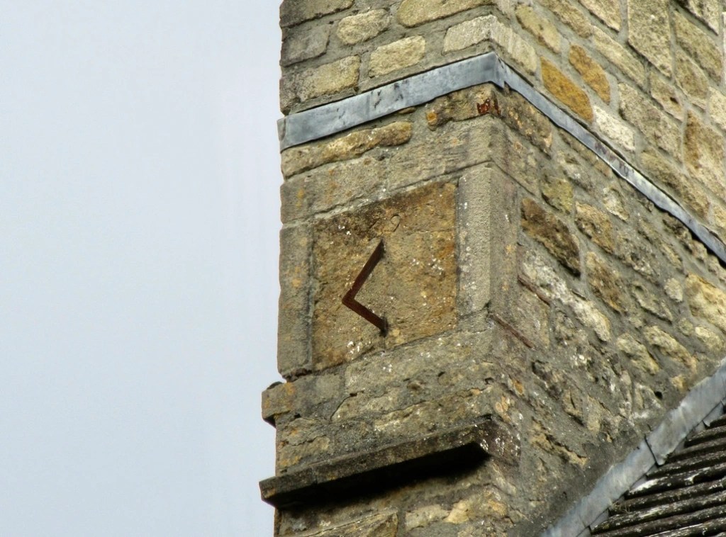 King’s College is one of the best-known Cambridge colleges, not least because of its pre-eminent choral music tradition. This fine dial is on the right side of the Chapel porch. The hour lines and numerals are painted in black directly onto the stone. The gnomon emerges through a golden sunburst, matched by two gold heraldic lions in the lower corners. The dial itself dates to 1733 (BSS) and the inscription J.C. 1578 on the face is a mystery: no specific association has been matched to it.