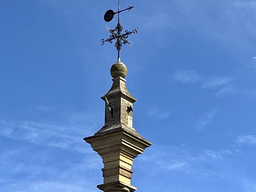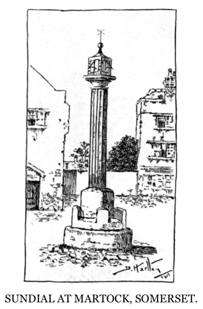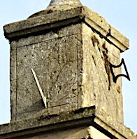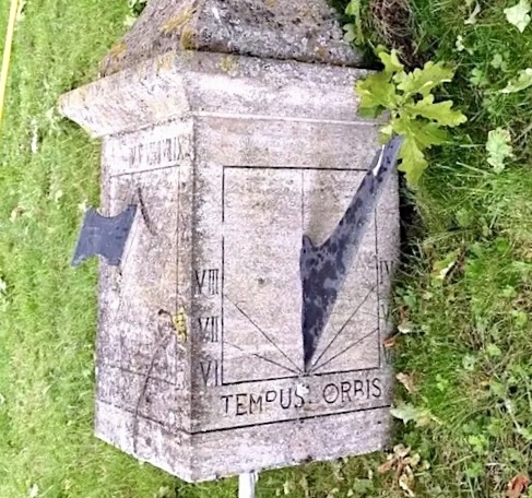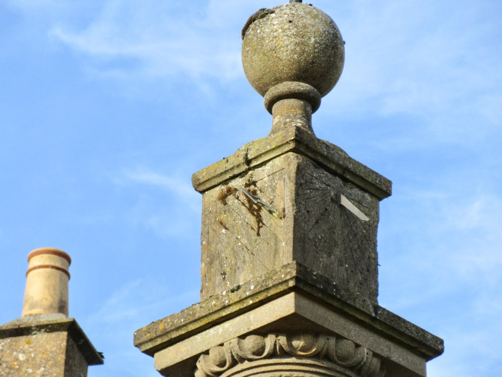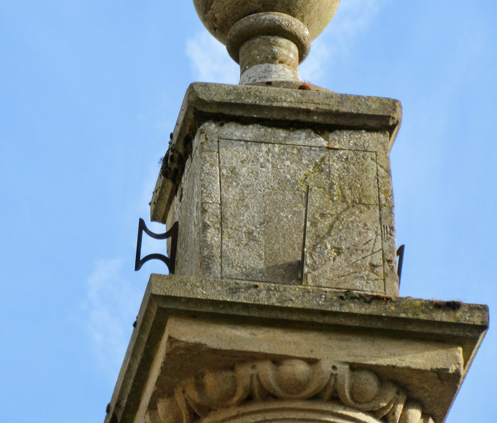 As seen today, the date 1676 is given top left of the south face on new stone. There is no date in the corresponding position on the right side. However in T G W Henslow’s delightful Ye Sundial Booke (1st ed 1914), his charming drawing shows the date 1732 in the top right of the south face with no date on the left side. And more confusingly, in the Wills’s cigarette card sundial series (1928, see below), both dates are shown.