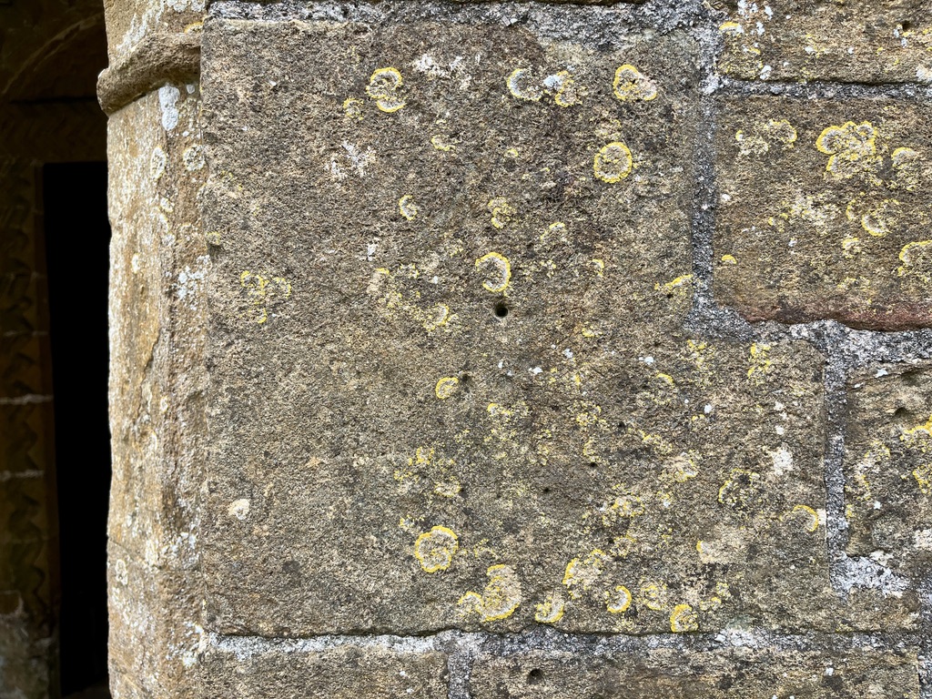 The likelihood of 2 dials in one small area, consisting only of a hole with not even a noon line between them, is pretty small. A very simple early dial might be superseded by a separate, more complex one in the fulness of time – sometimes on an adjacent stone. I’m not convinced by this pair. Probably I should find out what the church record reveals.