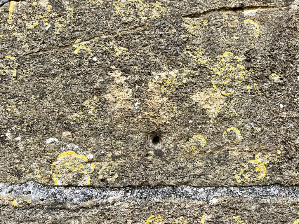 100 + years since the record was made, the circle has eroded away and the hole is not shallow. I had decided to demote this to the not-a-dial category. However, looked at closely and at an angle, it appears that what was once DEH’s ‘shallow hole’ has more recently been neatly drilled deeper into the stone (in fact, a dial would now be workable using a rod or stick). So I conclude that there is evidence of dialishness, though doubtful.