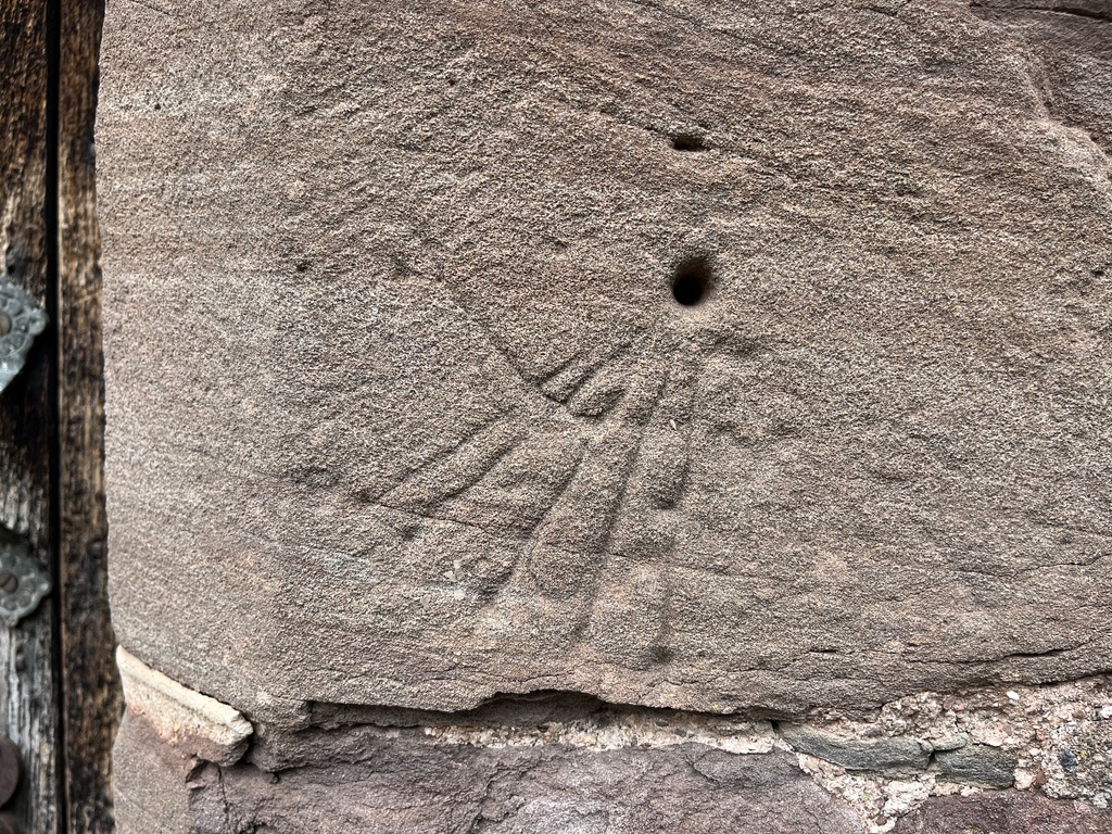 One of DEH’s early finds, in June 1912, as his researches spread out from Downside Abbey. He describes the dial as easily found, and ‘curious’. And so it is. I’d welcome any wise views on this unusual configuration.