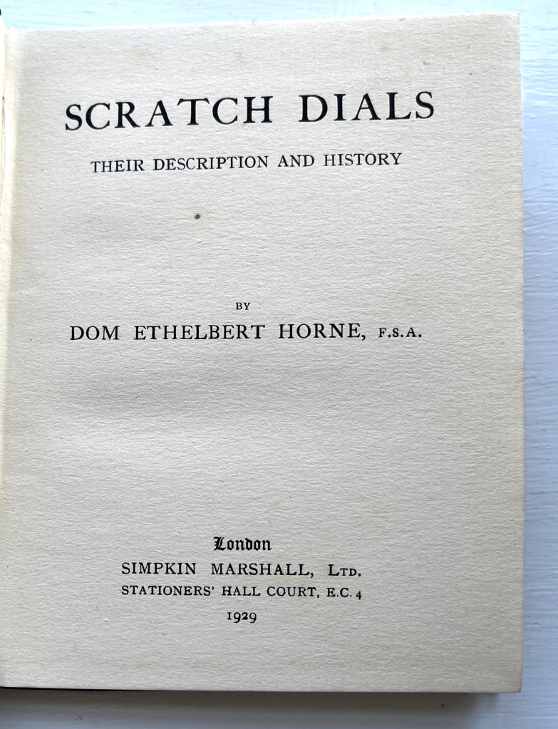 Dom Ethelbert, a monk at Downside Abbey, was the pioneer of modern scratch dial recording and analysis. From 1911 onwards, he visited dozens of churches the county of Somerset, and made careful notes of the dials that he found. He travelled by motorcycle, and was not the only Downside monk to use one. He also carried a camera, and considering the time he was exploring, he took many good and clear photos of the dials he found