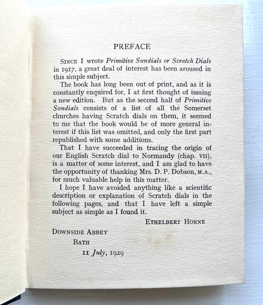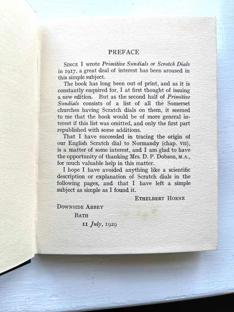 This little book was published by popular demand, the public imagination for scratch dials having been stirred by DEH’s original book, by then well out of print. It contains the complete text of the original but omits entirely the specific sections for each Division of Somerset. Instead there are new photographs, and blank pages for notes. This was the first Field Guide for scratch dials, about as niche as one could get.