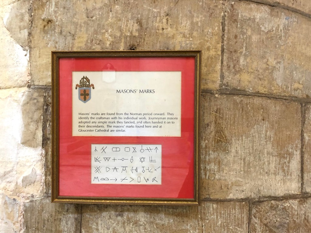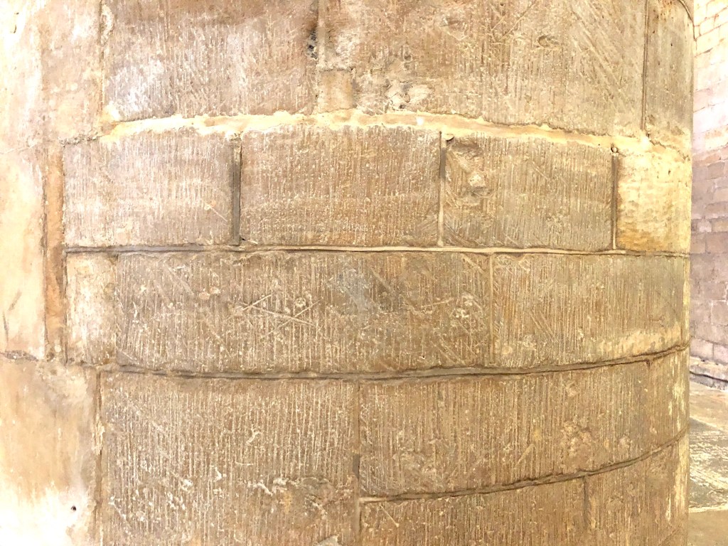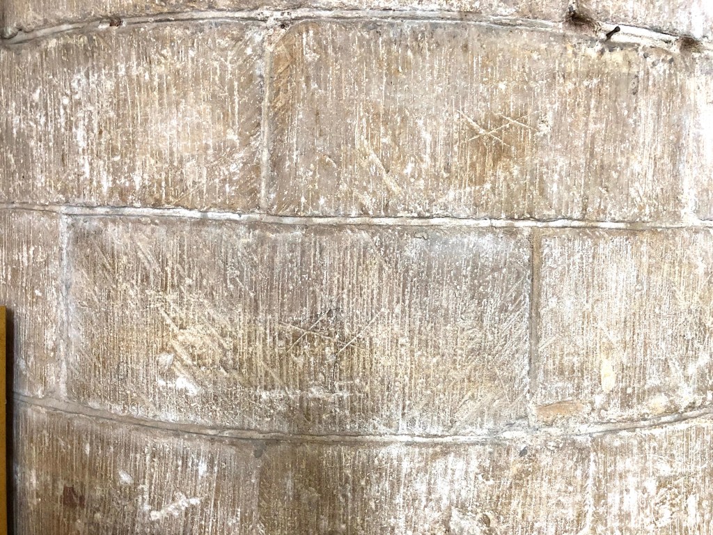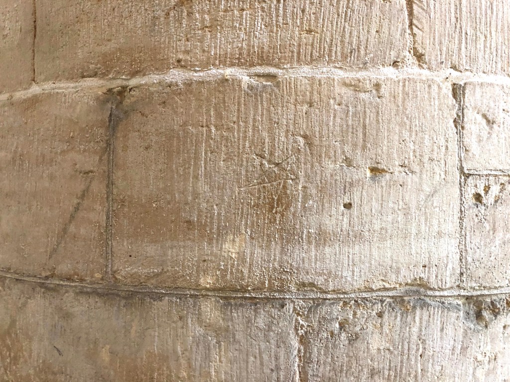 A gallery of Masons’ marks and graffiti scratched or cut into the columns