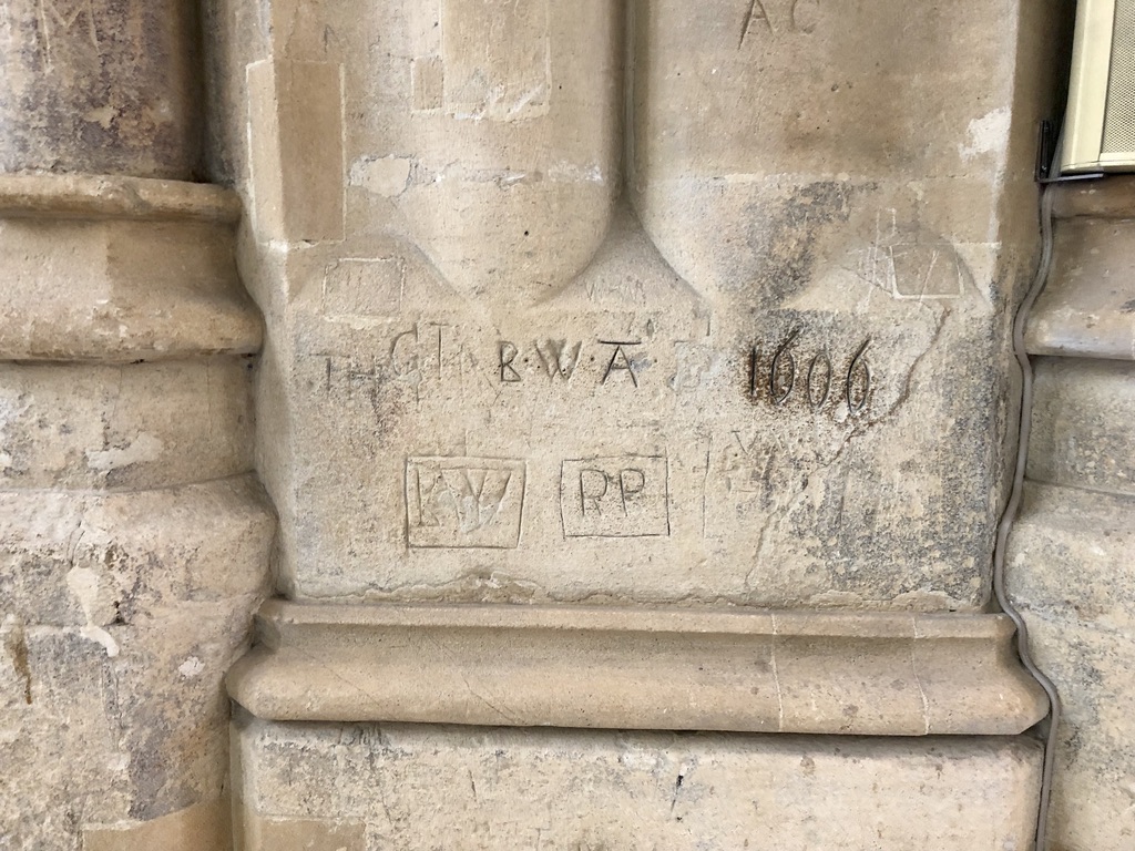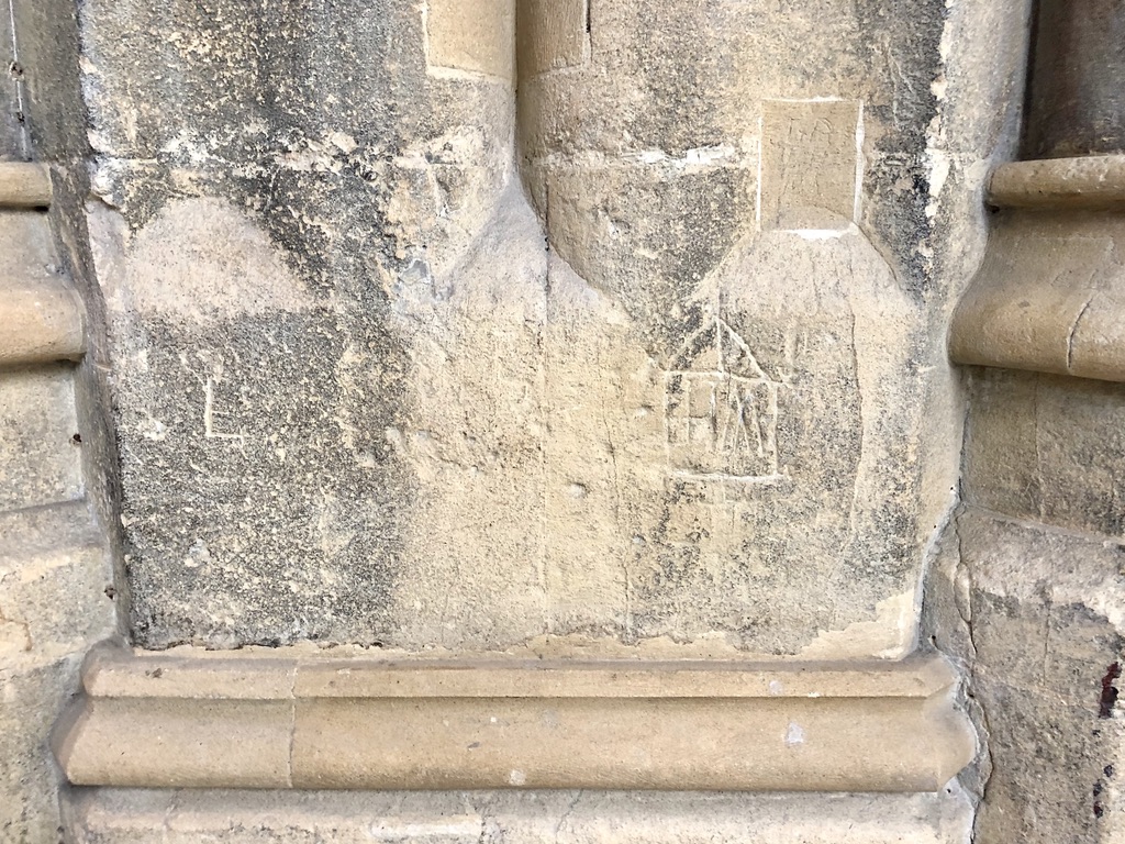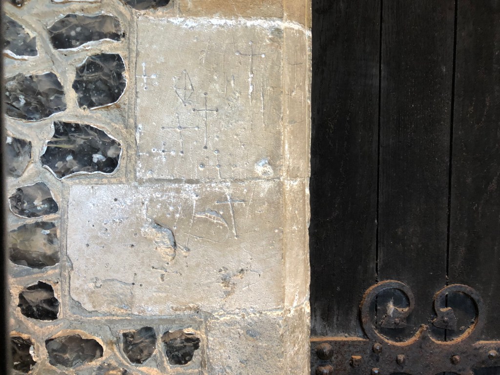 Graffiti: dates, initials, witch marks. Link to Scratch Dials (9)