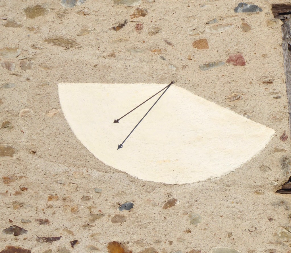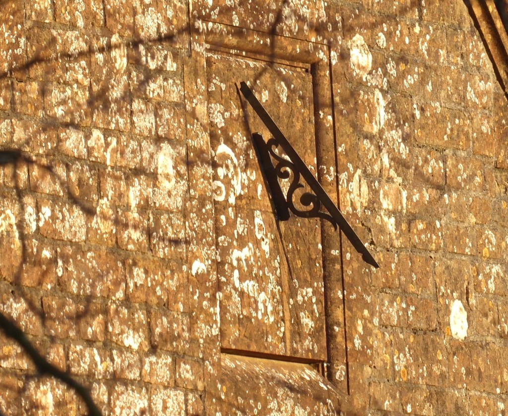 As plain a dial as you could wish to find, yet casting a strong shadow. BSS view is that it dates from the 1880s restoration and it doesn’t look as if the dial has been touched since then. It’s worth noting that the lamp bracket also works effectively as a plain unmarked dial.