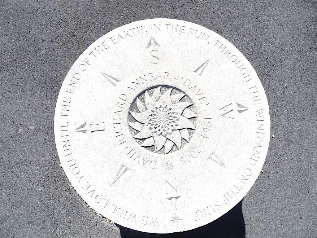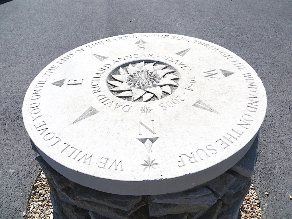A well-cut and dignified memorial stone sited close to the Dorset Wildlife Trust centre in Weymouth, near the start of the Chesil Bank.