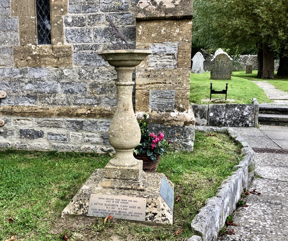 A very new (2023) memorial dial in the churchyard