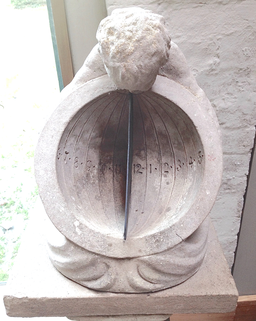 Scaphe Dial with cupid, with pedestal by Mary Watts. LINK TO POST
