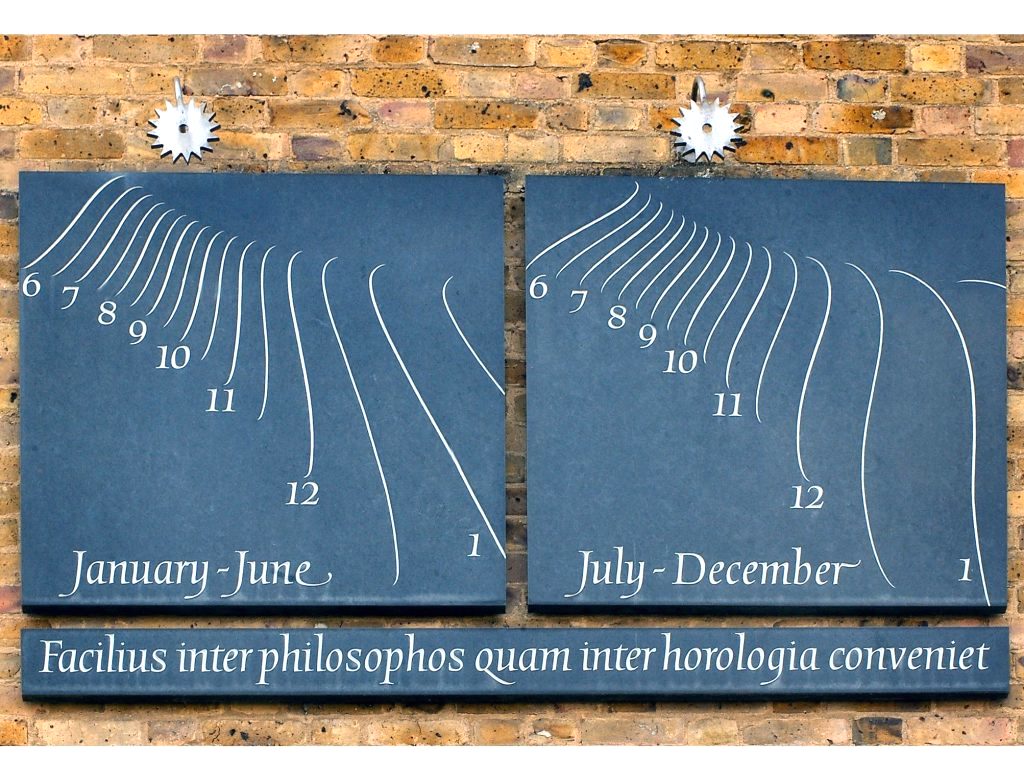 A memorial sundial for Max Nicholson (1904 – 2003), founder of the World Wildlife Fund WWF. Nicholson was a pioneering ornithologist, environmentalist, and conservationist. It was designed by his son Piers. LINK TO POST