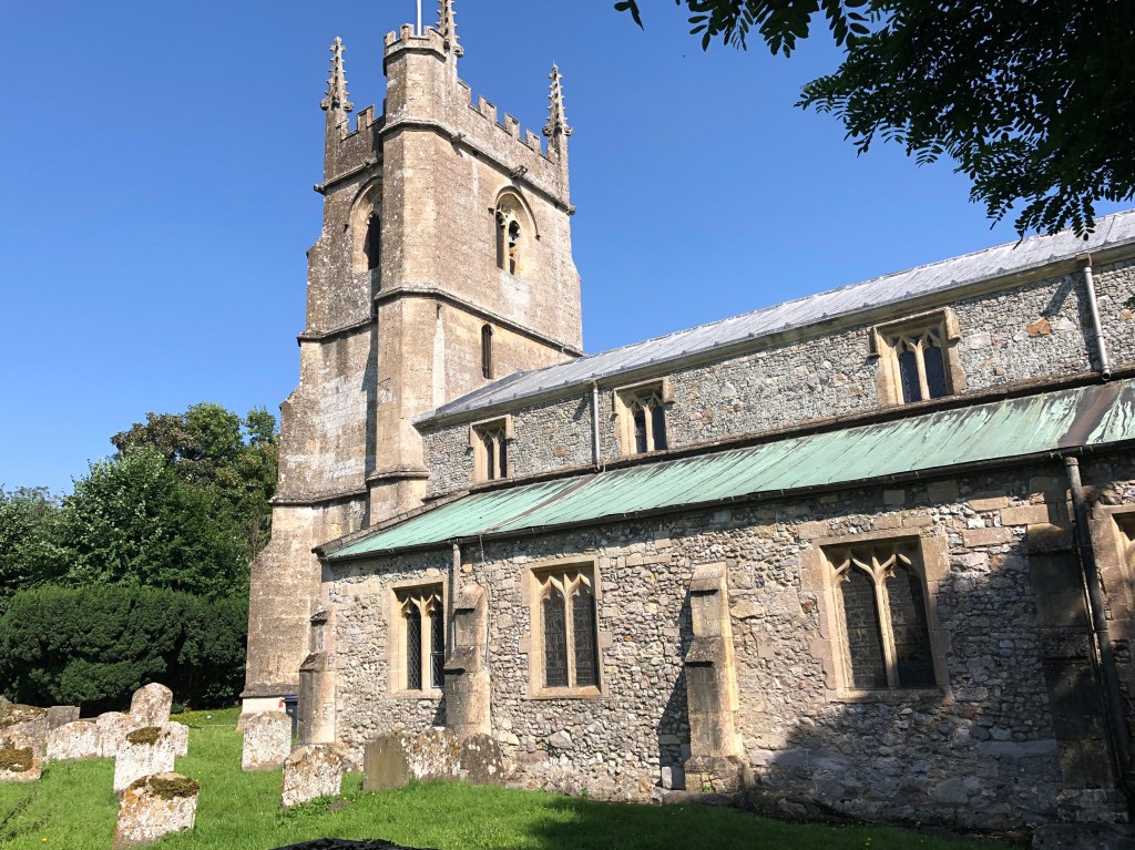 DEDICATION † St Laurence. Mainly C15, some rebuilding C18, with restoration and additions in 1885 by Crickmay, the notable Dorset architect. One of a number of local churches with stocks.