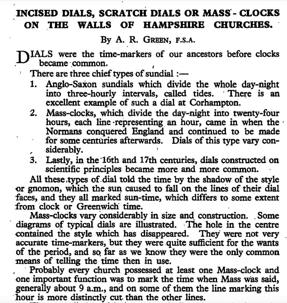 AR Green, Sundials: Incised Dials or Mass-clocks, Society for Promoting Christian Knowledge, London, 1926