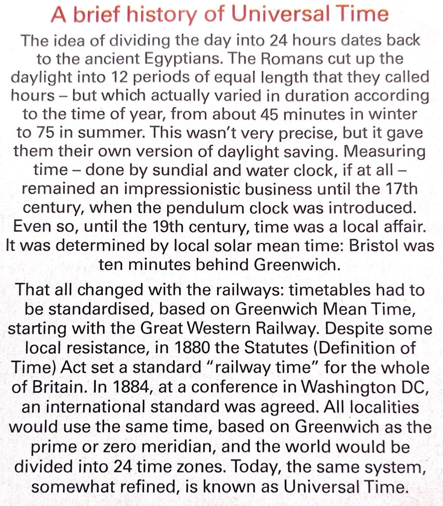 As sunrise at Dover occurred before sunrise at Penzance, the time given was ‘local time’ for each individual church and community, and local variations could occur if the sun did not shine for a few days. Furthermore, a miscalculation could easily lead to a parish priest celebrating certain feasts on different days to a neighbouring parish. It was not until 1880, in response to the complexity of railway timetabling, that British Standard Time or ‘GMT’, was legally adopted in Great Britain.