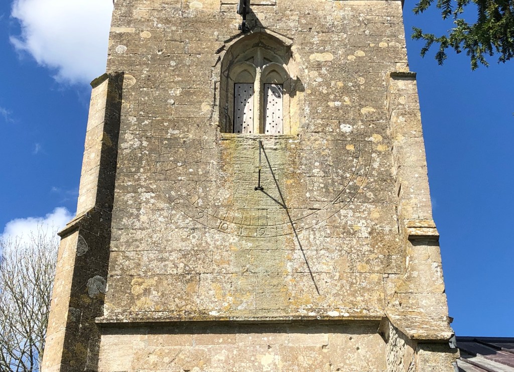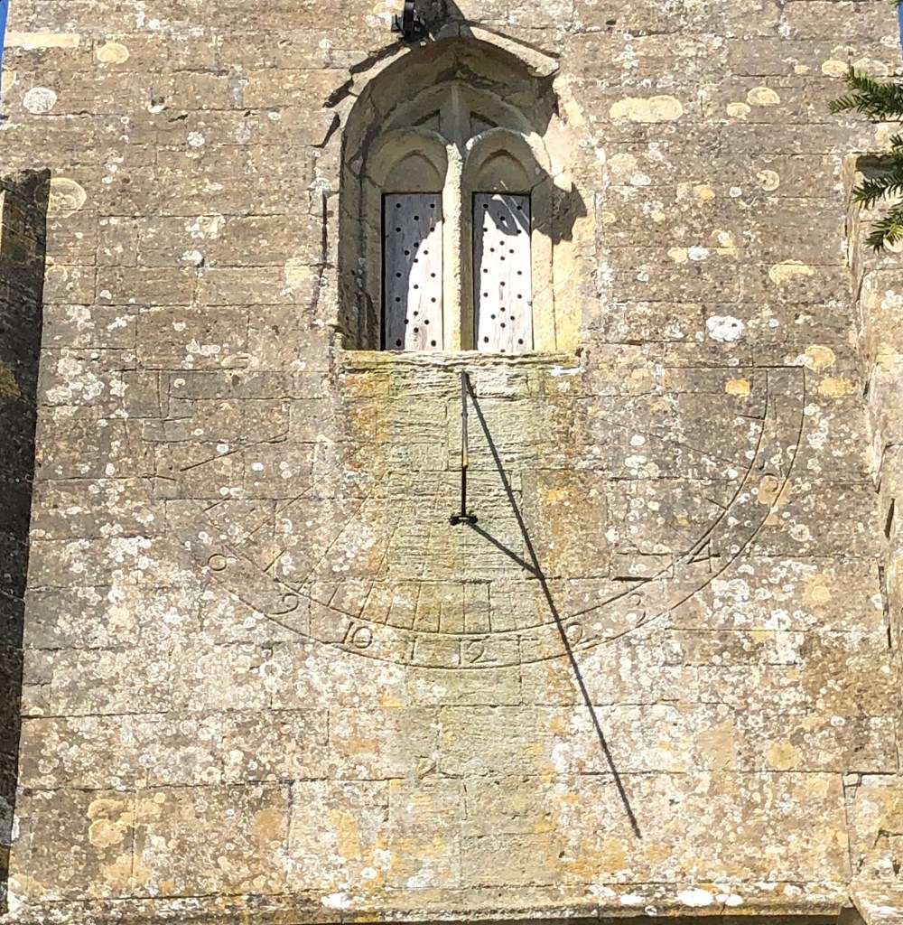 All Saints Church, surrounded by fields below the southern escarpment of the Marlborough Downs, is in the care of the CHURCHES CONSERVATION TRUST It is of particular interest for examining the slow transition of medieval scratch dials from rustic to cultivated. This article primarily features the massive sundial on the south face of the tower, but there’s much that could be written about the wonderful graffiti adorning the external walls – witch marks, dates, initials and so on. The wear and tear of history includes holes in the lower part of the tower wall from musket shots. There’s a great deal to explore and admire both outside and inside this most rewarding building. Then walk the paved priest’s path across the fields to the Saxon church of St Mary a few hundred yards away (there are 2 dials to look for). 51.358 / -1.8446 / SU10962