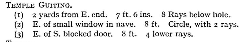 TWC in his 1935 ‘Origins and Use of Scratch Dials’ includes Temple Guiting in his county lists (along with nearby Guiting Power). There is no other information that I can find in any of the usual resources nor going beyond them. The century-by-century work on this church make it hard to know where to look, especially as stones may have been relocated or even removed.