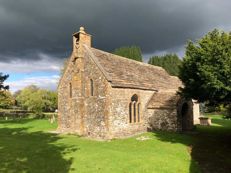 A very small, simple church (‘free chapel‘) tucked away under a hillside in a discreet corner of this hamlet. Approached along the edge of the drive of the former Rectory. Supposed hermetic origin. If you didn’t know it was there, you’d miss it – the bell-cote hardly shows above the trees.