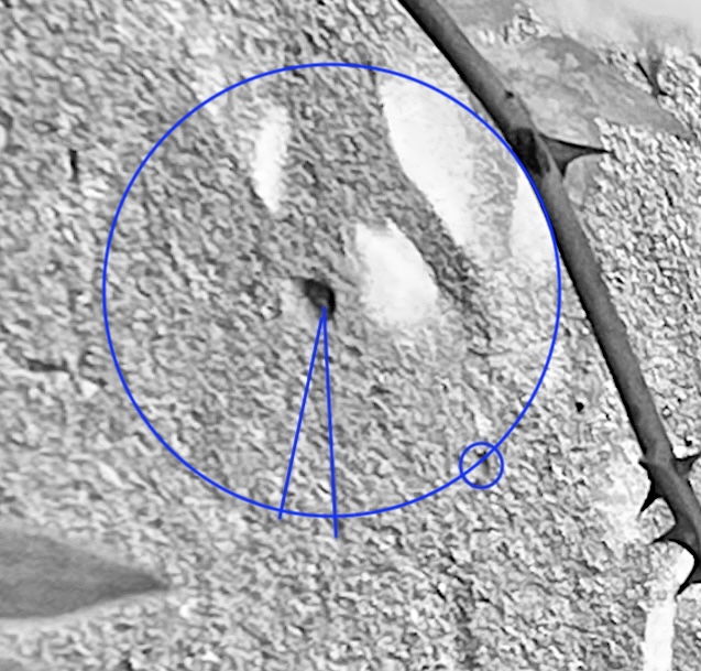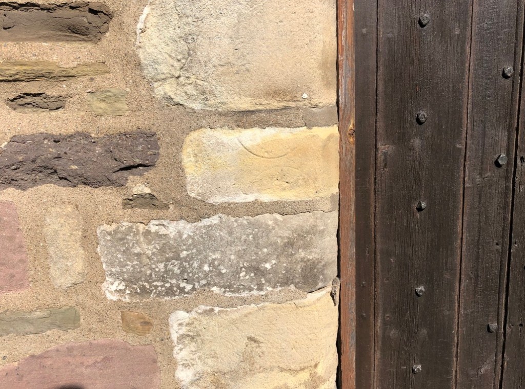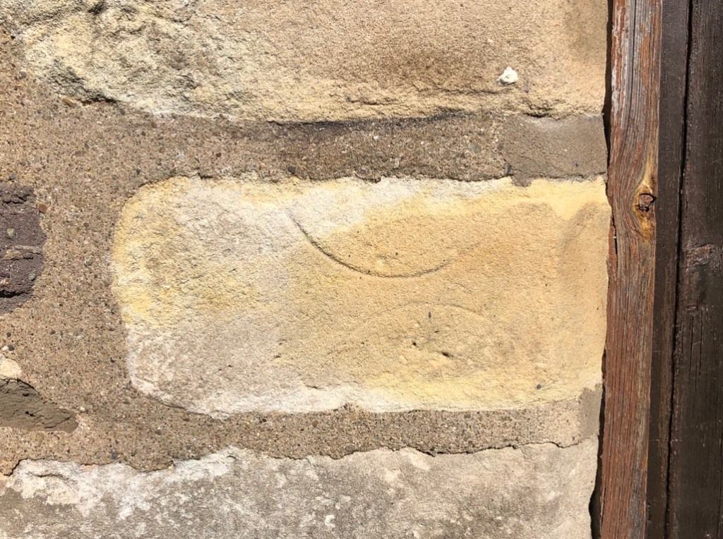 The church is said to have 3 dials, though I could only find 2 definite ones. The first is very rough, with ?2 lines dropping down from a plugged hole, and some scrapes around the area. It’s hard to see how it marked the course of the day effectively. The hardness of the stone may explain it.