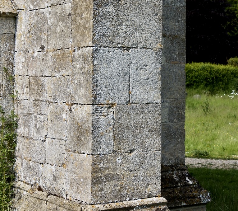 We eventually reached the West Kitchen, which has a door to the S side of the building. It was a great surprise to find a simple and eroded scratch dial between the doorway and the East Kitchen window. It is quite rare to find a scratch dial on a building other than a church. Non-secular dials can occasionally be found on medieval barns. Perhaps the Abbot’s dial was originally part of the original abbey building, and re-sited. I’d prefer to think that a factotum had cut the dial specially for an Abbott so that he could keep track of the important times of the monastic day for which he was responsible.
