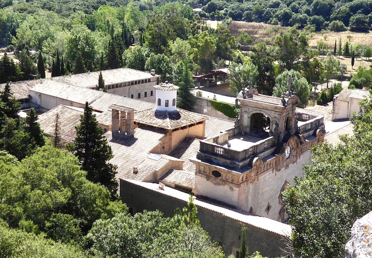 The secluded Monastery of Lluc is situated near Escorca in the Tramuntana mountains of Mallorca. It dates from the c13, and is famous for its Black Madonna, the discovery of which is said to have led to the monastery’s foundation . It is a place of pilgrimage. The location is remote and peaceful, though inevitably the monastery has become an essential stop on the tourist and coach party trail. We returned there recently, not having visited Mallorca for more than 20 years. The buildings were much as we remembered, but the parking and visitor arrangements were more regimented and complex. Before, one just drove down the narrow road from the main mountain road and parked in the forecourt area close to the buildings. Now, everything is (unsurprisingly) geared to a daily mass influx of people and their needs for sustenance and souvenirs. We were pleased to see that it is still possible to stay at Lluc in one of small rooms under a long covered walk where the monks once slept. You can even book a room for the night.