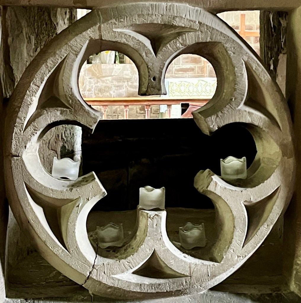There are two circles cut into one of the window jamb, the lowest with a dot in the centre. These are a simple form of protection symbol, repelling evil and preventing it from entering the church. Some theorise that these and more complex designs (eg ‘daisy wheels’) trapped evil within the circle – so-called demon traps.