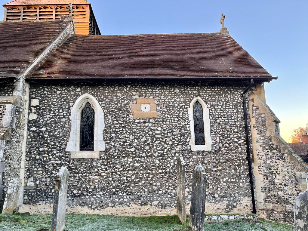 GRADE II* † Saxon origins, mentioned DB, no remnants remain. Nave dated c1180; rebuilding ± 1200, chancel added; tower added then or soon after. Mid-Victorian restorations; shingled spire rebuilt 1913. Much of interest within the church – see HERE for highlights. 6m NE of Guildford. 51.2509 / -0.5052 / TQ044512